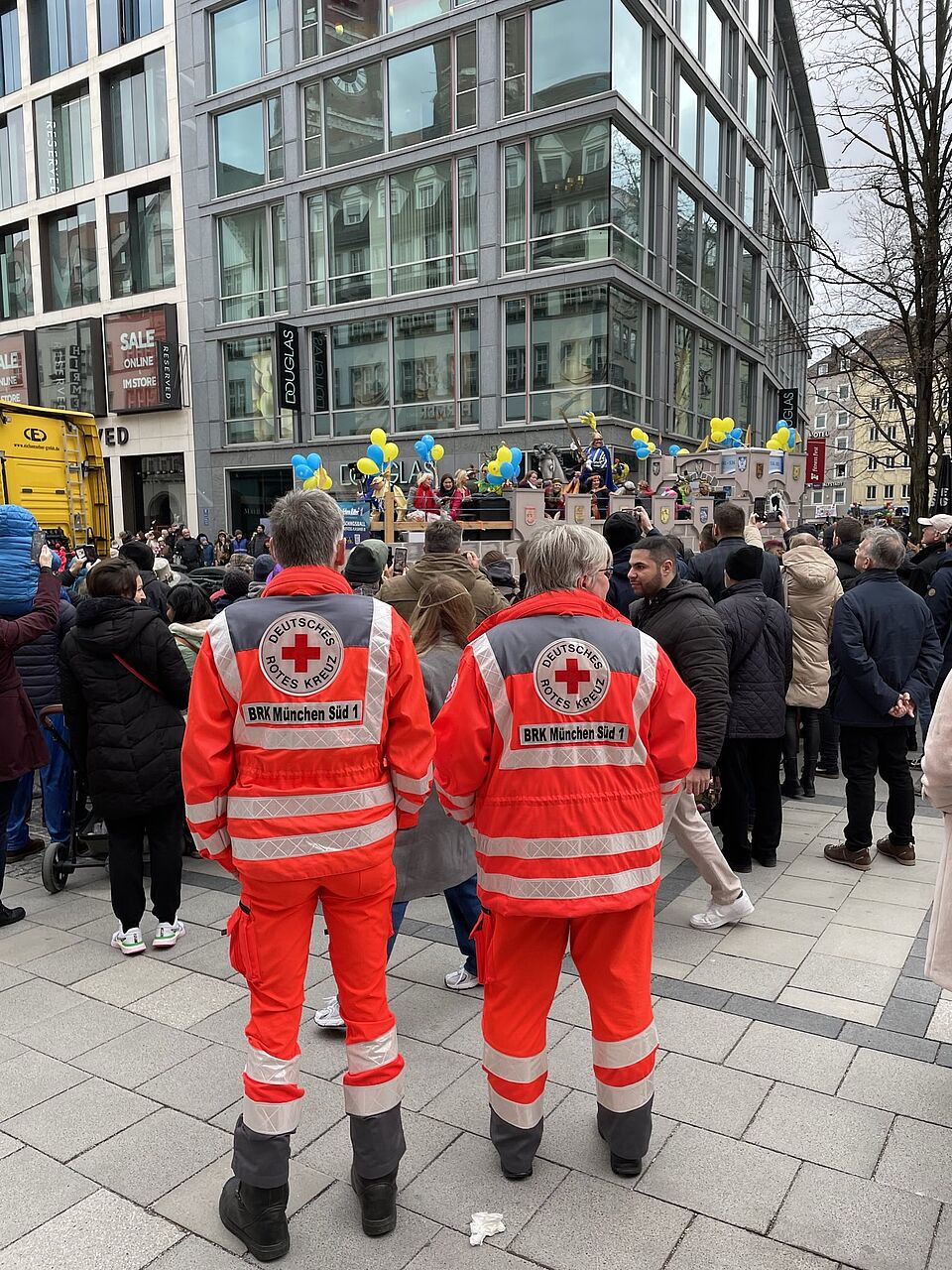 Am Faschingssonntag, Rosenmontag und Faschingsdienstag sind insgesamt 48 ehrenamtliche Einsatzkräfte des Münchner Roten Kreuzes für die sanitätsdienstliche Betreuung der großen Faschings-Party in der Innenstadt „München Narrisch“ verantwortlich. Zwei mobile Notärzte stellen die ärztliche Versorgung sicher.