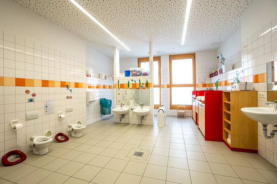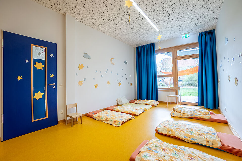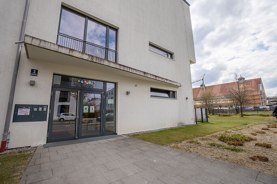 In unserer Krippe im Mildred-Scheel-Bogen im Stadtteil Schwabing betreuen wir 72 Kinder im Alter von neun Wochen bis drei Jahren. In sechs Gruppen, verteilt über zwei Etagen arbeiten wir im teiloffenen Konzept. In unserem neuen Haus sind für die Kinder alle Gruppenräume modern, großzügig und hell eingerichtet.