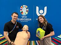 Das Münchner Rote Kreuz setzt sich im Rahmen des Reanimationstrainings Get Trained, Save Lives für die Schulung von Volunteers der UEFA EURO 2024…